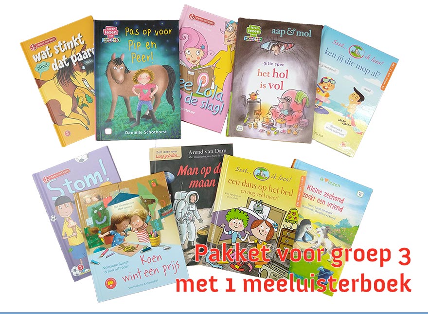 10 Verschillende boeken voor groep 3 met als actie: 1 boek gratis voorzien van Meeluisteraudio voor kinderen die lezen lastig vinden.